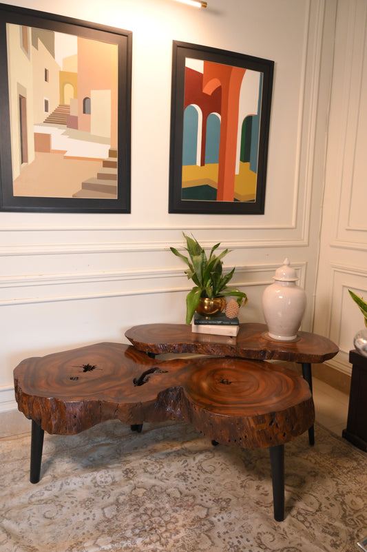 Four years ago, a mother and daughter started this journey to celebrate the raw beauty of wood. We highlight the unnoticed natural marks from time, weather, and termites turning them into functional art. With careful selection and expert finishing, we create pieces that honor nature’s craftsmanship, bringing its untouched beauty into your home.